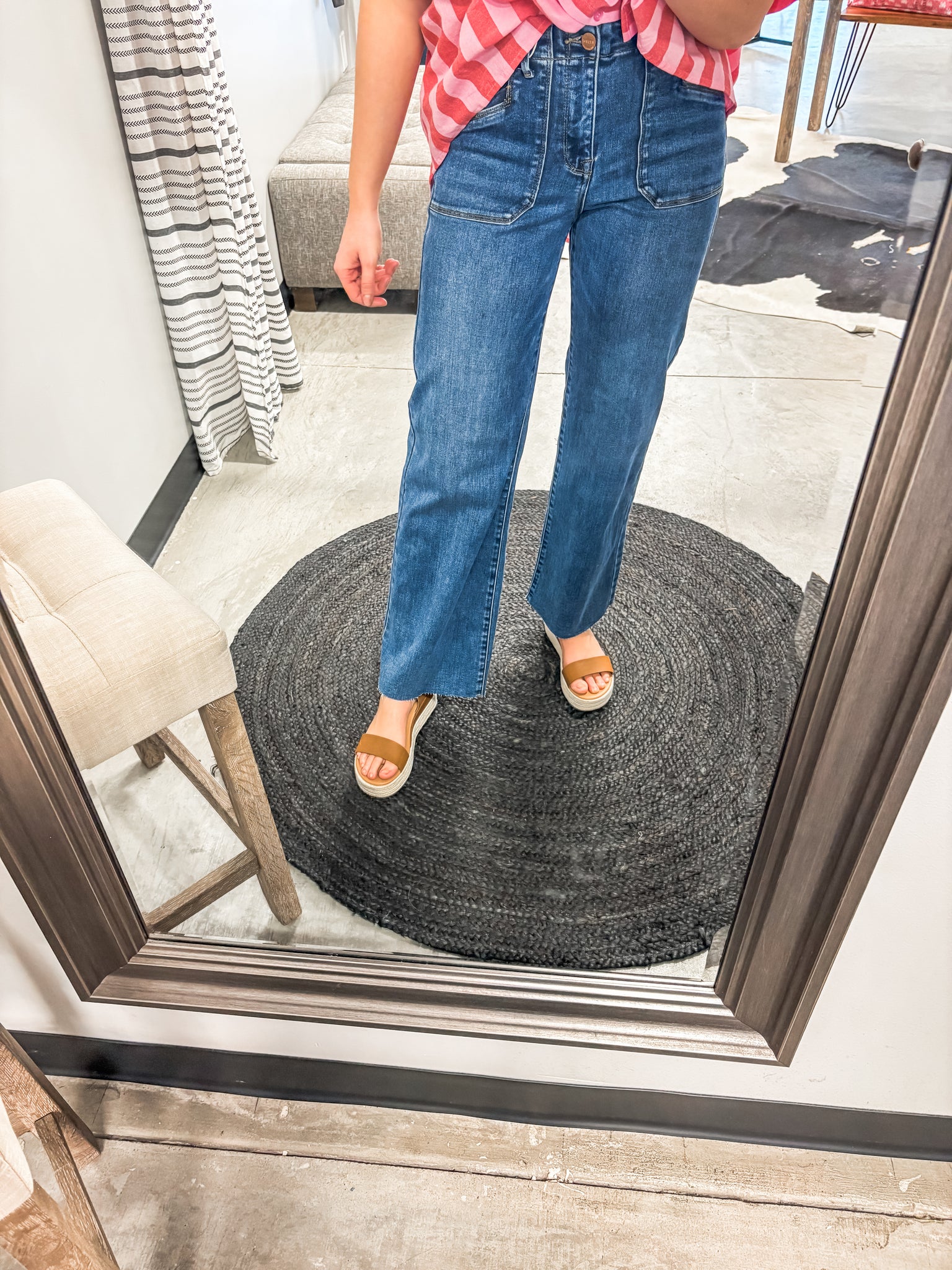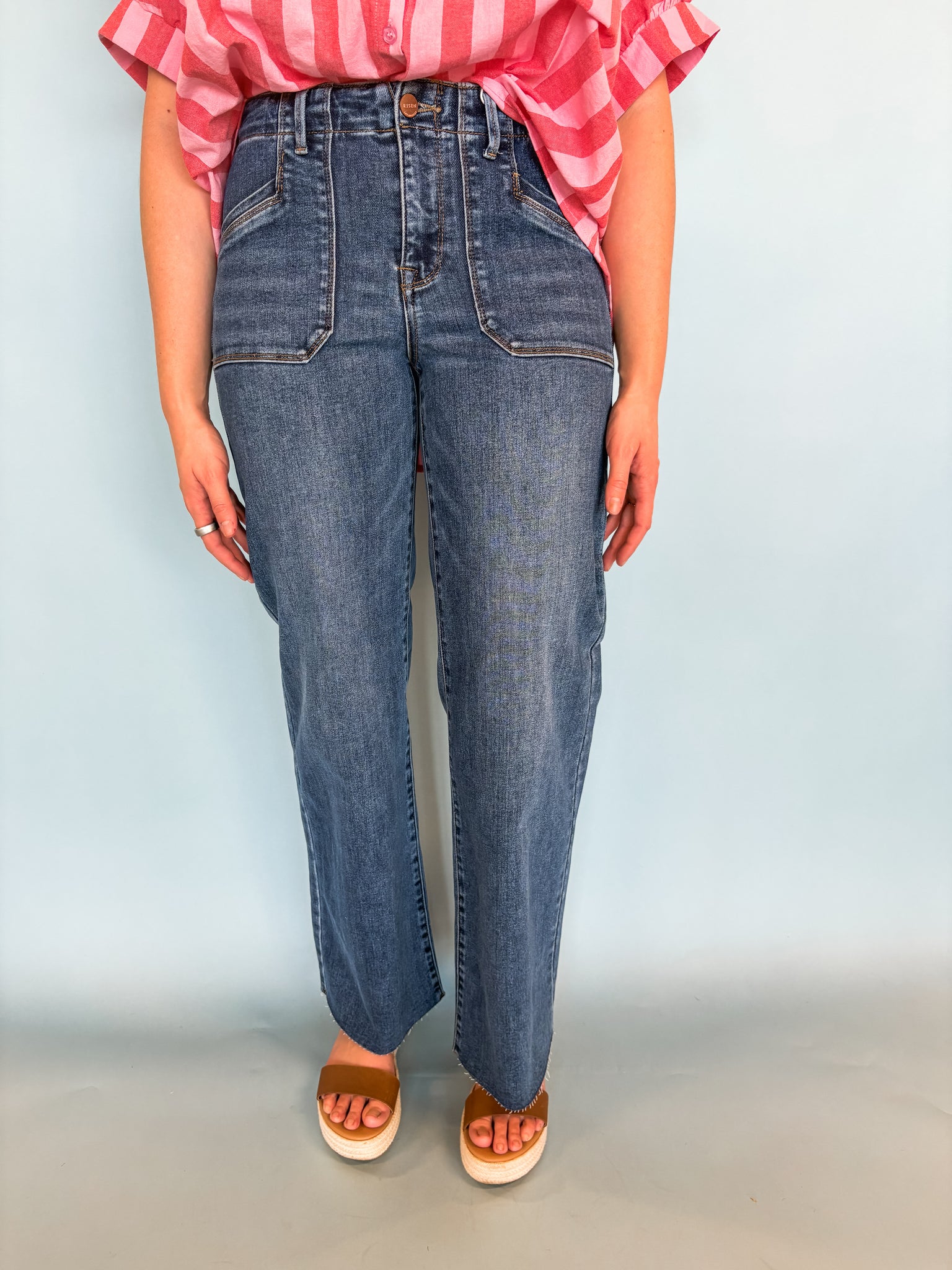 SLOUCHY WIDE LEG JEANS WITH FRONT PATCH POCKET DETAIL