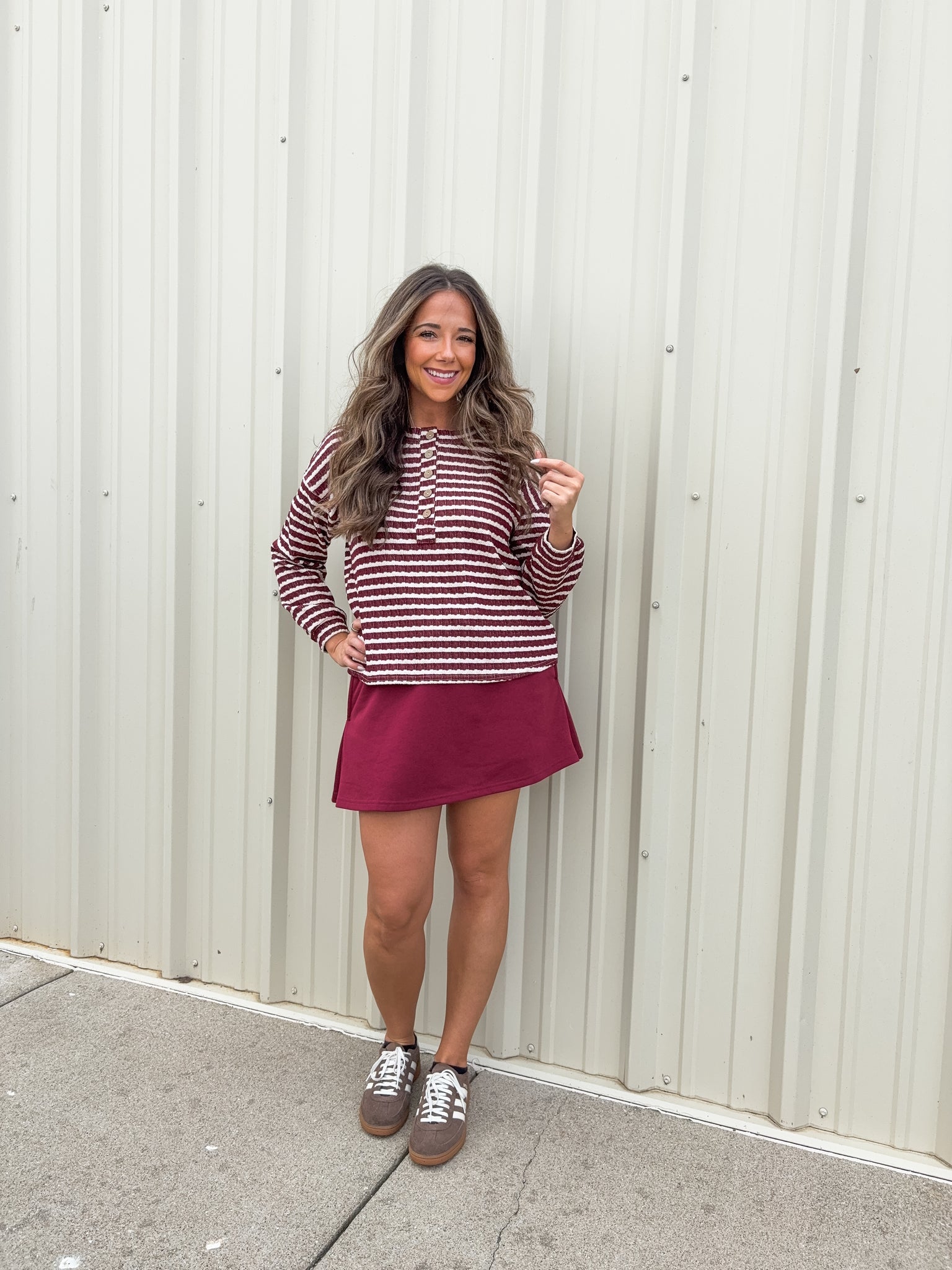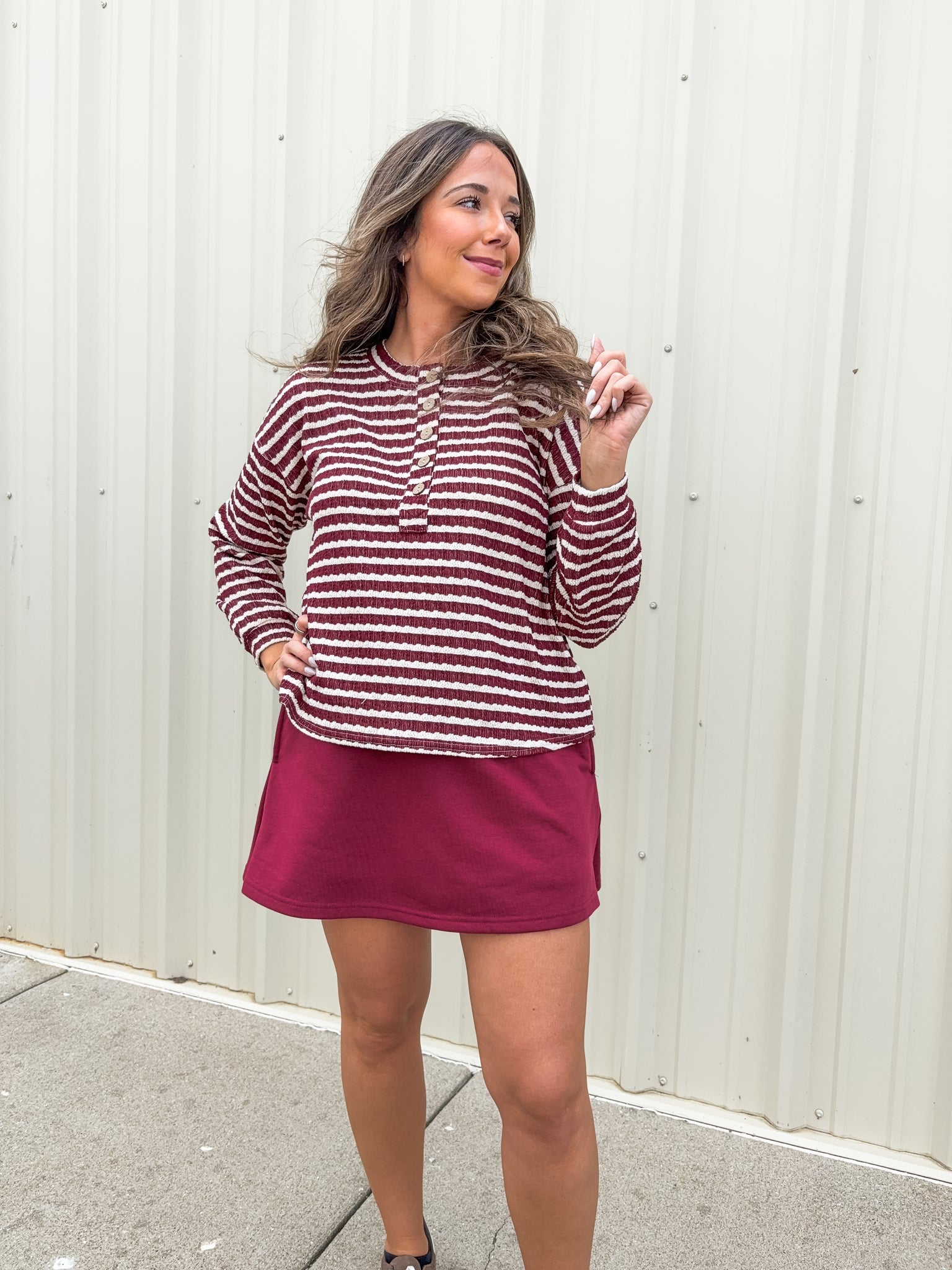 Stripe Textured Long Sleeve Henley Knit Top